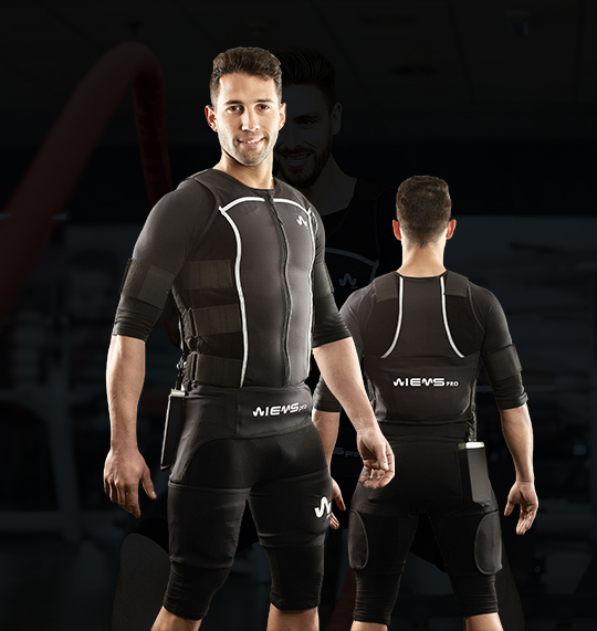 2 trajes de EMS con cableado interno y bandas que permiten 100% de libertad y movimiento para el usuarios con tallas desde la XS hasta la XL.